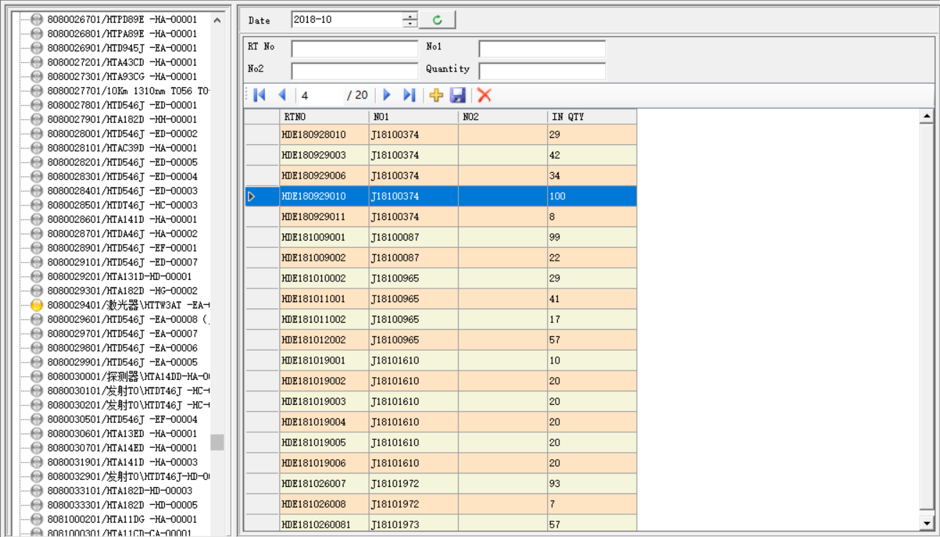 选中左边目录树的物料,指定年月,点刷新按钮,即可显示指定条件下投料明细