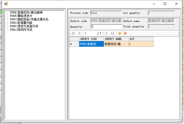 输入Reject Quantity,回车,在下图分别指定不良代码及数量