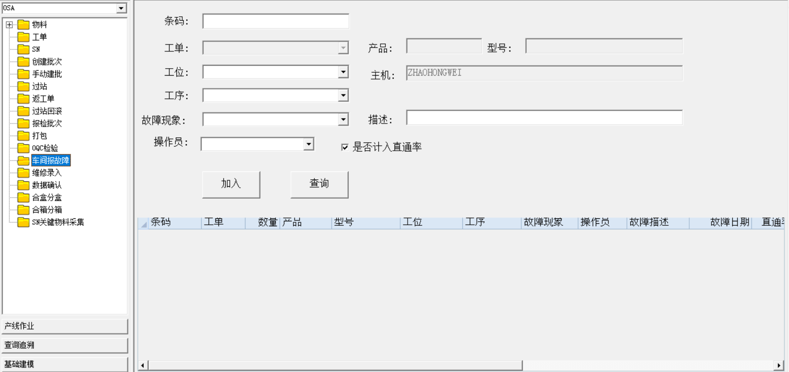针对生产过程中产生的不良品,录入故障详细信息